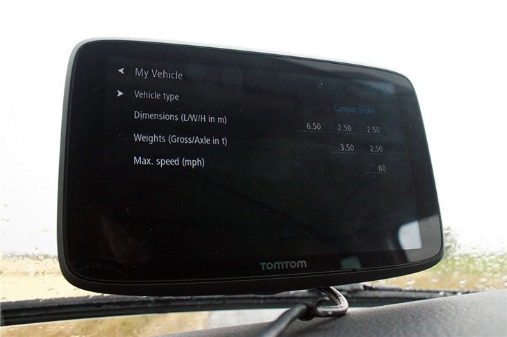 Once plugged in and attached, you need to enter some vital stats about your camper van. This means the length, width and weight. You'll also need to tell the TomTom about the van's legal maximum speed. Once armed with this data, the router will do its best to avoid any roads that are not suitable for your van.