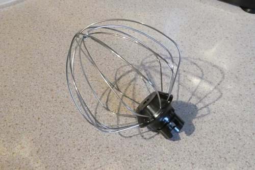 We used the whisk attachment to make some cranberry brownies. The whisk is suggested for light mixtures - like meringues and sponge mixes. The airy sugar and egg mixture was mixed very well with no lumps, but the recipe required the stand mixer to be on maximum setting (eight on the dial) and it is fairly loud at full power.