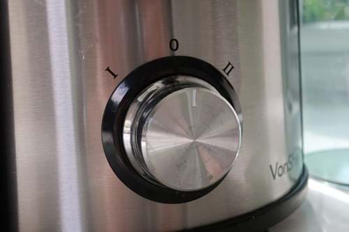 On the plus side, the VonShef juicer is fairly small when it comes to kitchen appliances, slotting easily into a corner of our kitchen counter. There are two speed settings, with the slow (1) speed being used for soft ingredients like berries, oranges and tomatoes and the faster speed (2) being used for hard foods like apples, ginger and carrots. For added safety, the juicer will only turn on when the lid has been locked in place with the locking arm.