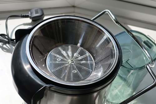 In the box, we get the motor base (main body of the machine), food pusher, juicer cover (with feed chute), stainless steel mesh strainer, juice container and pulp container. The feed chute that the fruit or veg goes into is a useful 75mm, which means we didn't often have to chop veg into smaller pieces for them to fit. Even whole tomatoes and carrots fit easily.