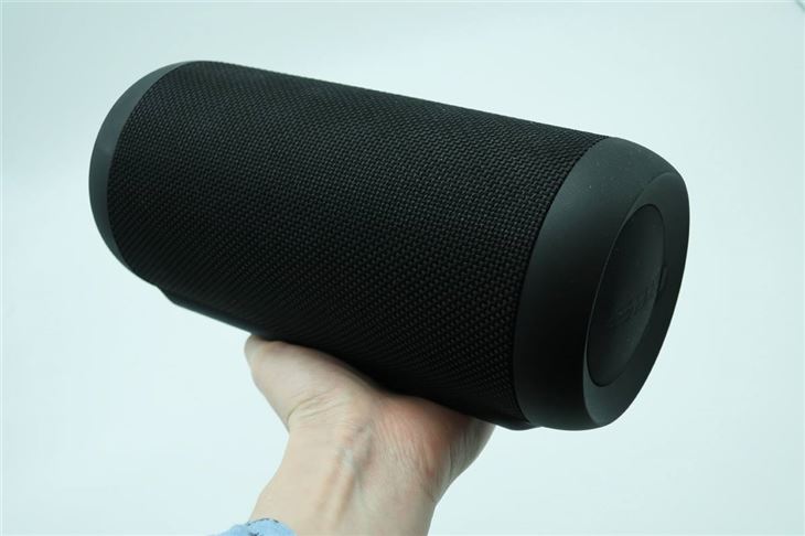 In terms of design, it looks decent - if not a bit generic-looking. The cylindrical-shaped speaker is weighty and doesn’t feel cheap, but it is pretty large for a so-called portable speaker - as you can see from photos. There’s also strap on the back for carrying it around or attaching it to a bag or the like on the go.