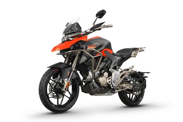 Let’s start with that seat. It has a height of 840mm, which makes it higher than many commuter bikes but lower than a lot of adventure offerings. This test rider is 5ft 10in tall and could swing a shorty leg over the saddle with ease and get both feet on the ground. Normally, that’s vital for confidence with this sort of bike, but the Zontes tips the scales dry at 149kg, so it’s a doddle to push around the garage or forecourt when filling up with petrol.