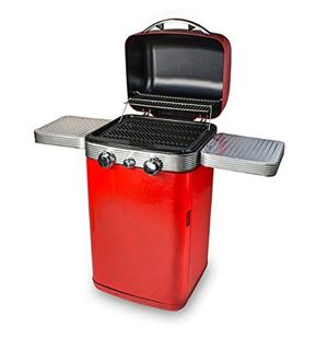 If you only need a modestly-sized BBQ but want something that looks cool, this retro offering from Memphis could be an ideal choice with its resplendent red finish and classic Americana design. Flip the lid and you get a pair of burners and side trays both finished in stainless steel, while the grills are cast iron for durability. The lower half houses the gas bottle but also offers space for utensils and a rack for condiments.