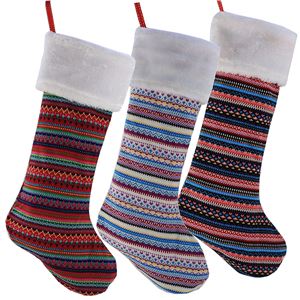 A traditional look with the value of a three-pack, these stockings sold by Wewill have a traditional Christmas vibe as well as being sturdy enough to hold plenty of gifts. Approximately 19 inches long (48cm) they are available in three patterns, but it is important to note that at currently prices the more plain design is less than half the price of the snowflake or mixed Christmas designs.