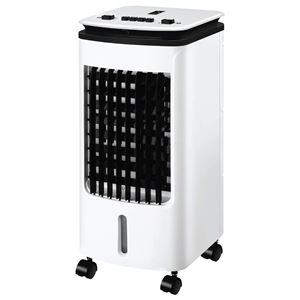This air conditioner is a step up in size and output, with a four-litre water tank and separate ice box packs that you can fill and freeze to drop the output temperature right down. A dust filter helps to clean up the outgoing air and it includes three fan speeds and an oscillation setting so it can spread cooled air throughout the room. It also comes on castors so you can easily wheel it around your home or office.