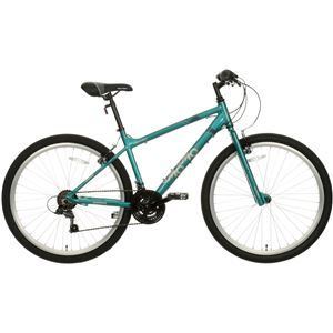 If you’re looking for something with more of a road-bias this Riviera model from Falcon could be just the thing. It’s a 17-inch frame only, but the 6061-spec alloy frame helps to keep the overall weight down, and there’s a 21-speed Shimano gearset and semi-slick tyres to smooth road riding with minimum fuss. Disc brakes front and rear add reassurance on the commute too, but note this bike is a web-exclusive from Halfords so can’t be viewed in-store. It’s also exceptionally purple and pink, which will either be a major plus point or a deal-breaker...