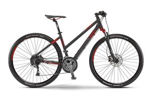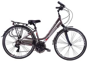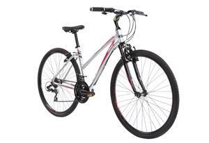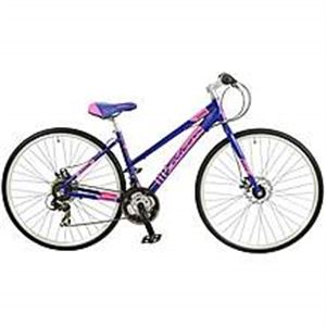 This Traveller model from Ammaco is one of the most hybridised at any price, mixing a number of desirable features. The alloy frame is a step-through design, with a padded saddle and rear carrier for comfort and convenience, yet unusually it has SR Suntour front suspension and a 21-speed Shimano gear set for dealing with tougher conditions. Add in the hybrid tyres and you have a bike that can cope with just about anything you might point it at.
