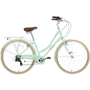 Another bike brand with an Olympic legend’s name attached, the Pendleton Somerby Hybrid mixes a classic step-through shopping bike frame and a sprung leather saddle with modern tech. The alloy construction means it weighs a modest 14.6kg with steel forks for strength, with alloy V-brakes and a seven-speed Shimano gearset for easy progress out on the road. It also comes with double-walled hybrid tyres, giving added puncture resistance and the ability to cope with minor off-road excursions.